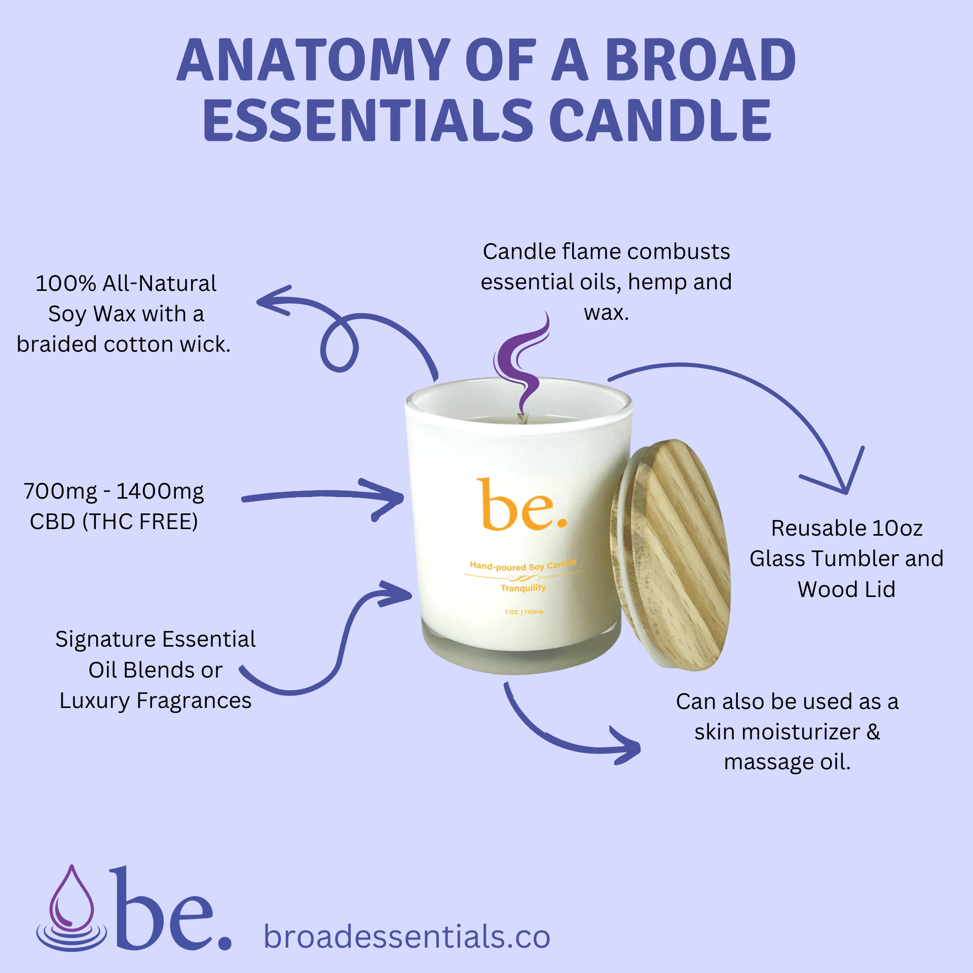 100% Soy Wax, Essential Oil Blend (Eucalyptus, Peppermint), Menthol, 99% Pure CBD.